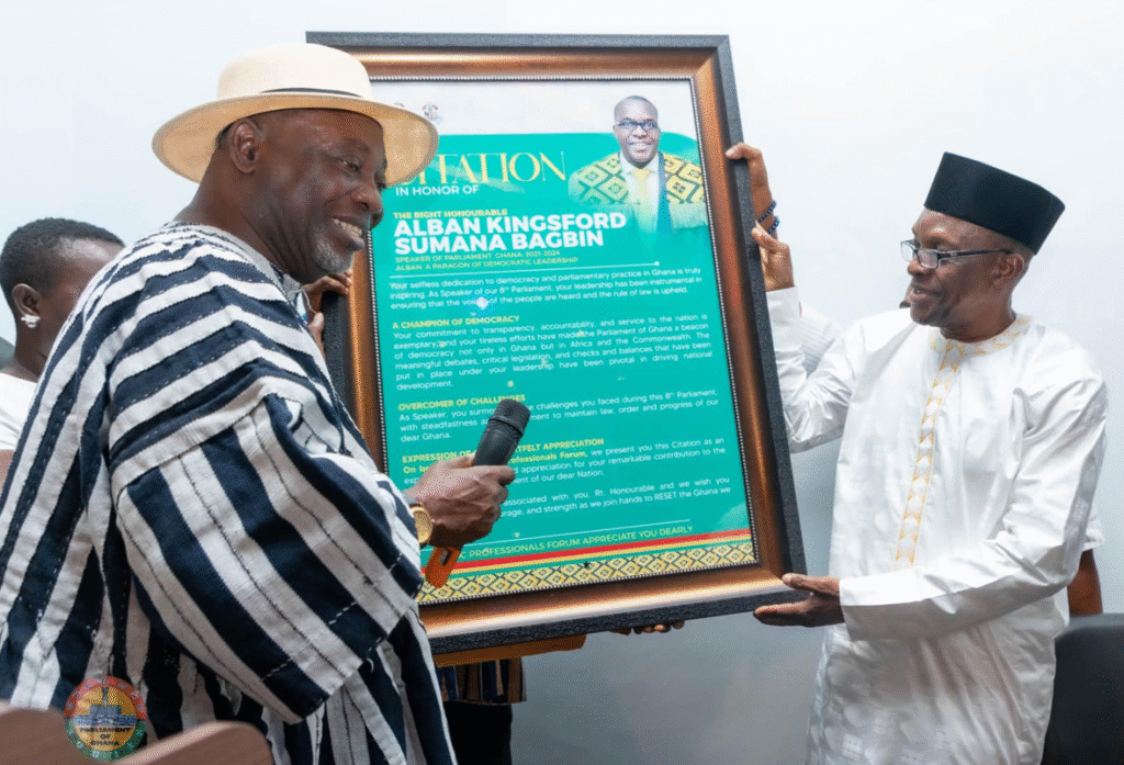 The National Democratic Congress (NDC) Professionals Forum has honoured the Speaker of Parliament, Alban S.K. Bagbin for his role in strengthening Ghana’s democracy and providing steady leadership in the 8th “hung” Parliament.